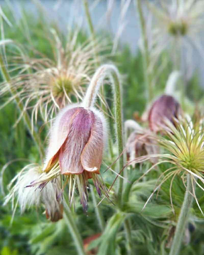我が家の庭は今オキナグサが咲いてますが、花後に出来る種に白い長い毛がありそのタネが密集してそよぐ姿を老人に見立ててオキナグサって言うらしい。
