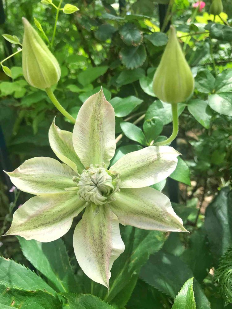 グリーンのクレマチス珍し~いって思ったら本当のお顔はブルーとは…😶