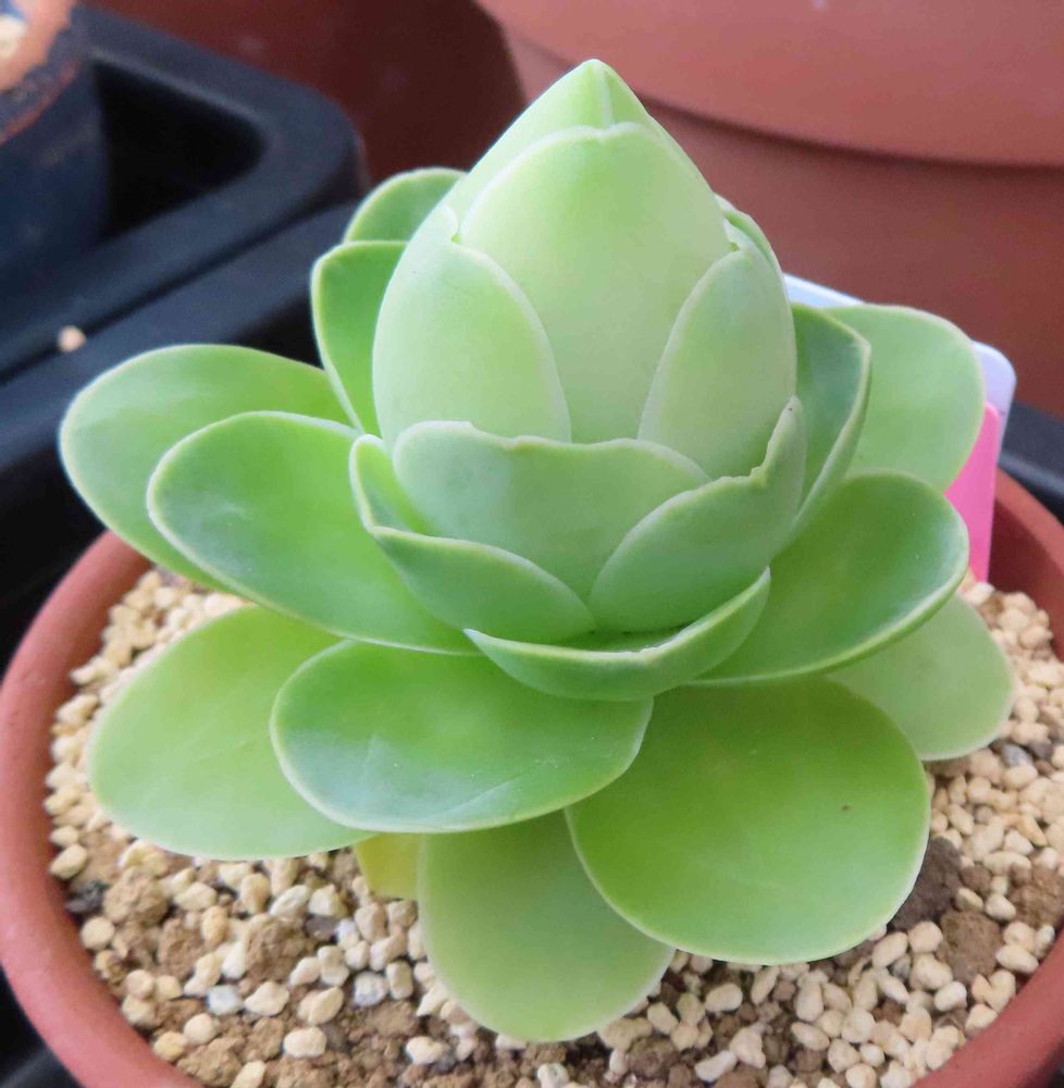最近気温が上がって、急に成長点が閉じてきたアエオニウムのオーレア。夏の休眠の準備が始まったのかどんぐりのようなフォルムになってきた。いずれは全部閉じて玉子のような形になるけど、今ぐらいの形もユニーク。