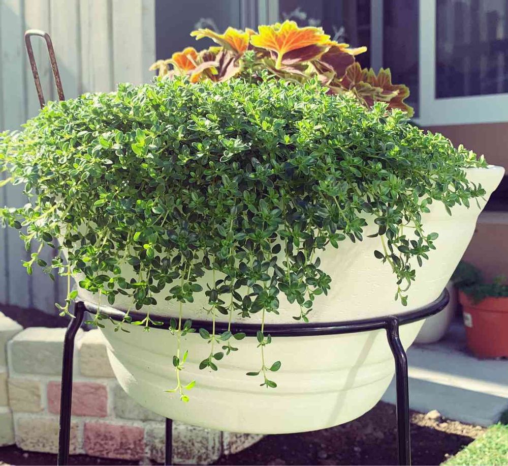 モミジバゼラニウムと同居しているタイム。