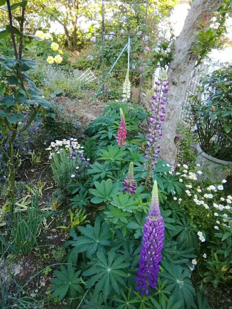 紫のルビナス咲きました。先日のp.c.の反対側です。10月に種をまきました。