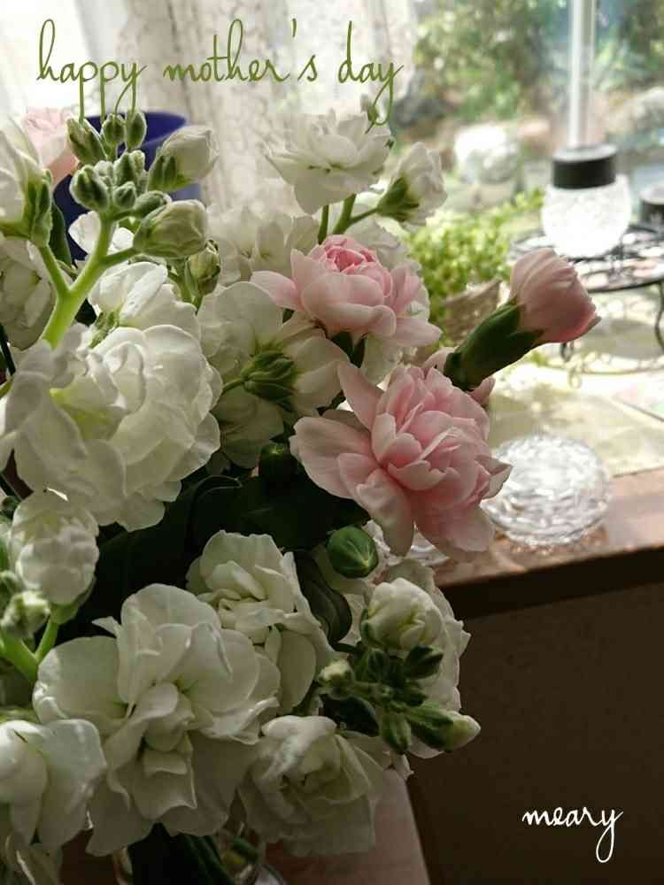 さん♥お疲れ様〜優しい色合いの母の日🎁面白い渡し方でしたね🤭🤭🤭 メアリーさん睡眠取ってください🙋💕