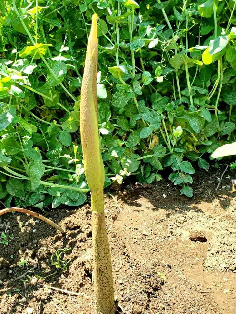 さん よくわからぬまま育ててます❗去年植えたら結構大きくなったけど掘り起こしてまた春先植えたらこんな芽がニョキニョキ出てきましたよ🎵またさらに大きくなったらいつかこんにゃく作れるかな?