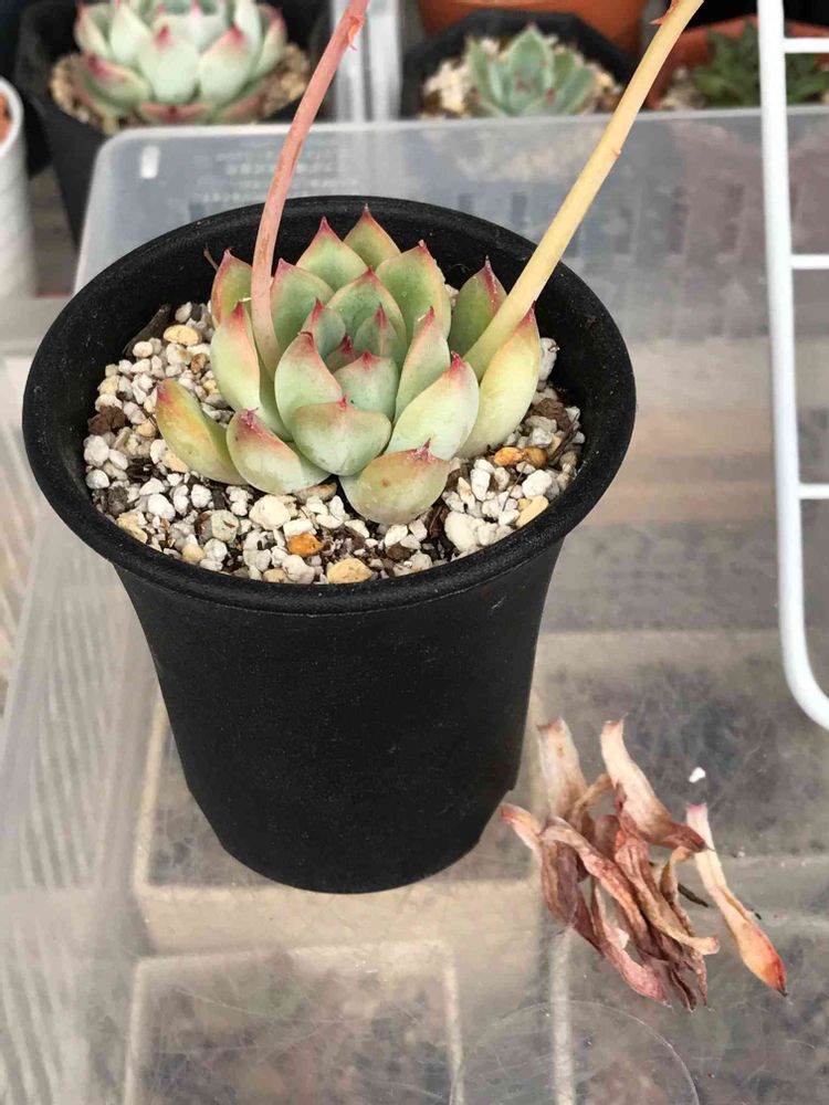 多肉植物初めて半年プレリンぜの初期の葉っぱを掃除しました✌️(えっ!こまめにヤレと!?😅)😱😱😱ε=┏(・ω・)┛