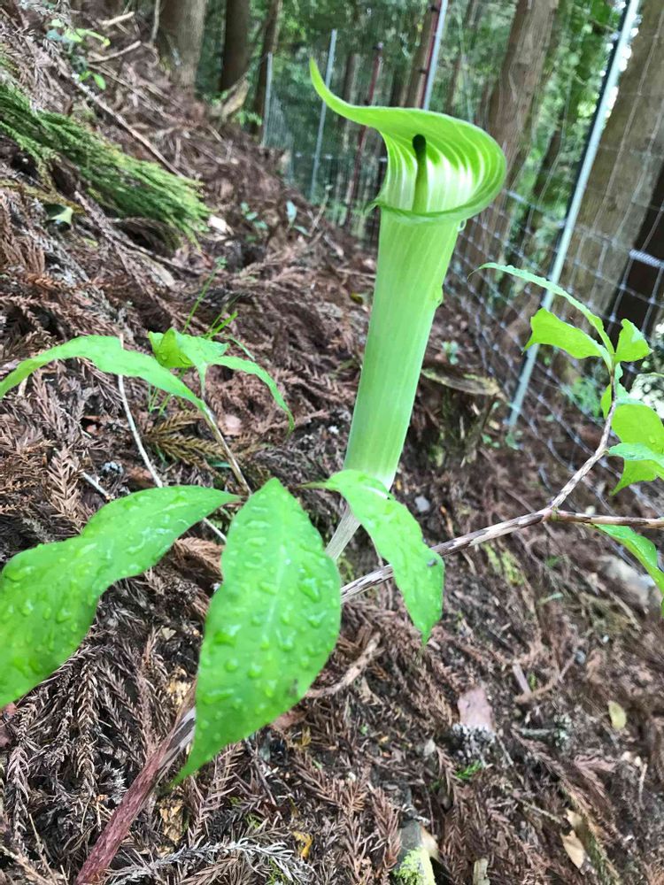 ムロウテンナンショウかもしれません。テンナンショウの仲間の中では清々しい色ですね👍