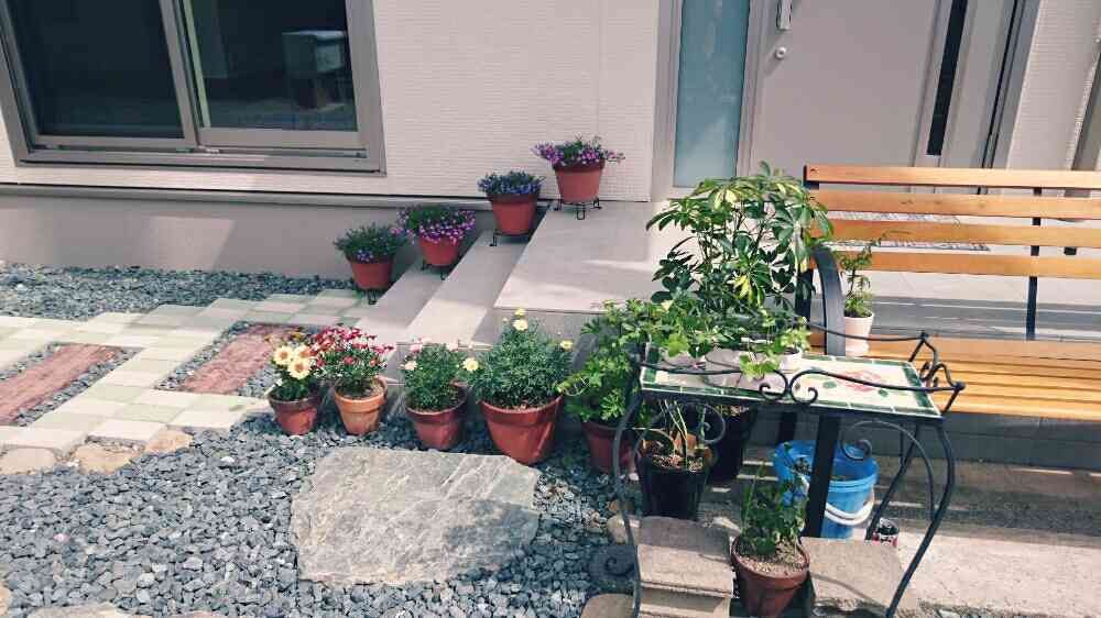 日光浴中の観葉植物も合わせたら、なかなかいい感じのアプローチになってきたヽ(*´∀`)ノ