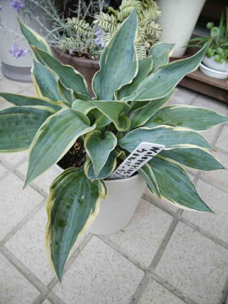ギボウシ ウォルバーリン。米映画のアベンジャーズの一員の名前。手から槍みたいなのが出てくるヤツ。葉の形で名付けたのかなぁ?