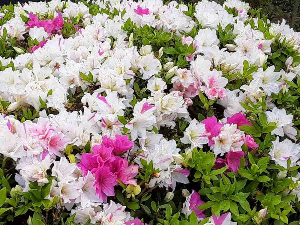 この木は一本で、白、ピンク、斑入りになっているらしい。