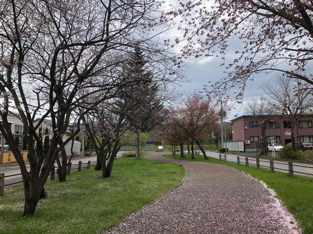 落ちた花びらが道を彩っていてとてもきれいでした✨
