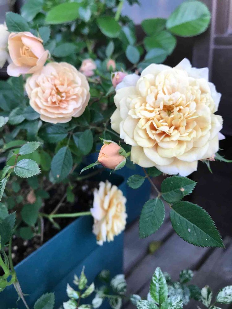 昨年近所のバラ友さんがモカは黒点に弱いから断舎離したいというので頂いてきて、我が家で初の開花です🌹