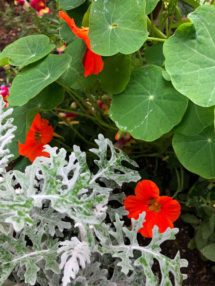 広い庭,ナスタチューム,シロタエギク ダスティミラーの投稿画像