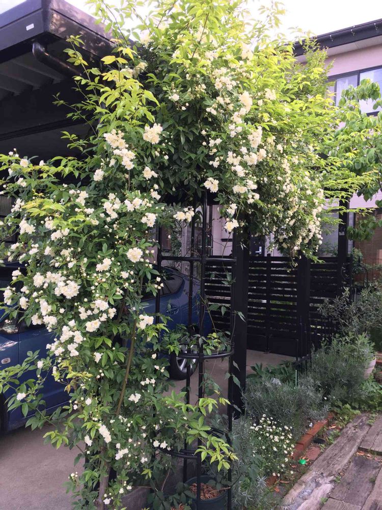 カーポートもモッコウバラを這わせたら素敵なガレージです😀