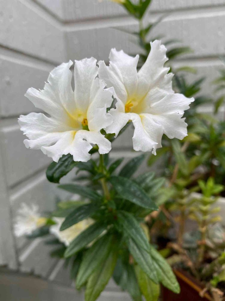 ミムラス。初めて見ました😊白色で可愛いお花ですね❗