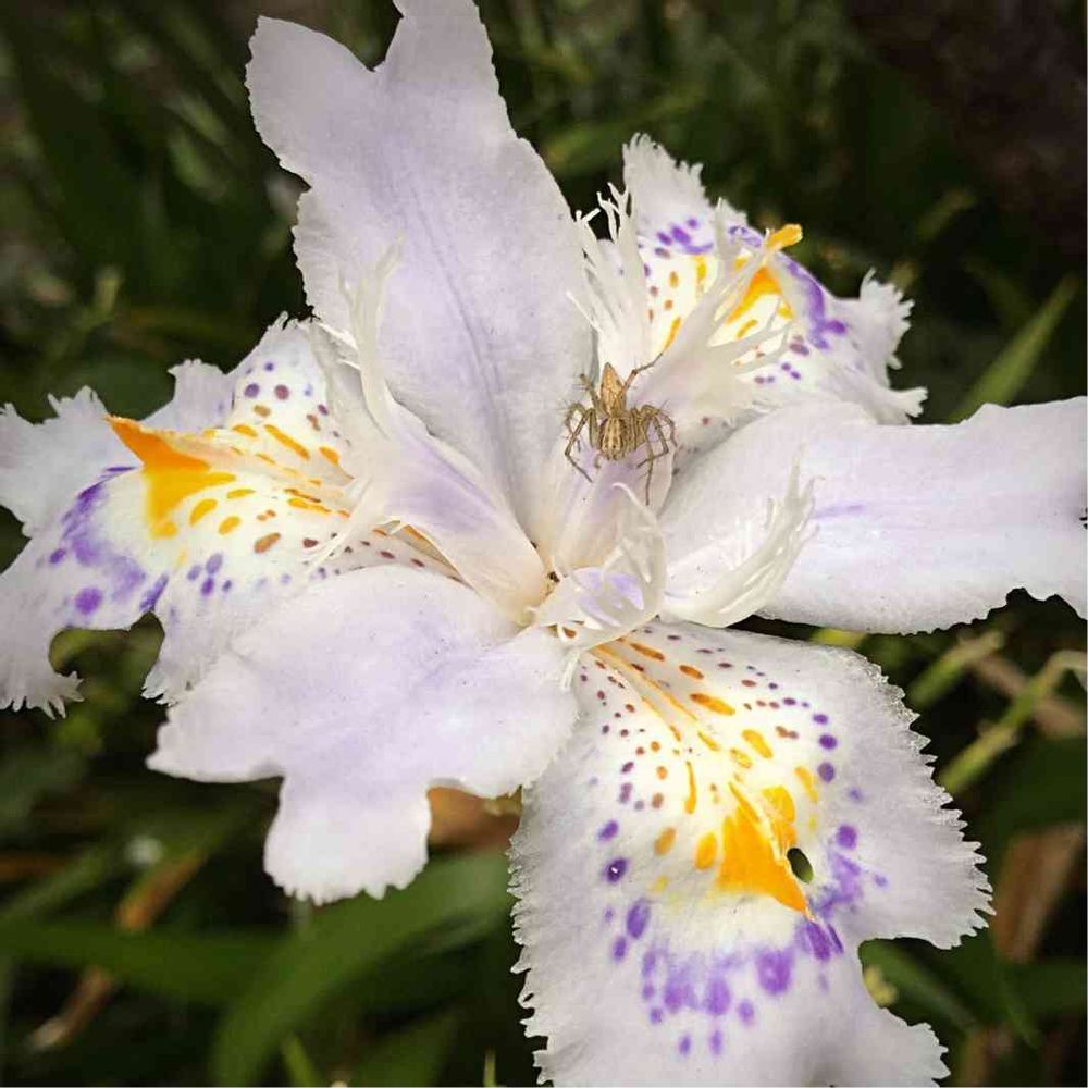 シャガ…うちの庭では最後の一輪、クモちゃん付き🕷💦