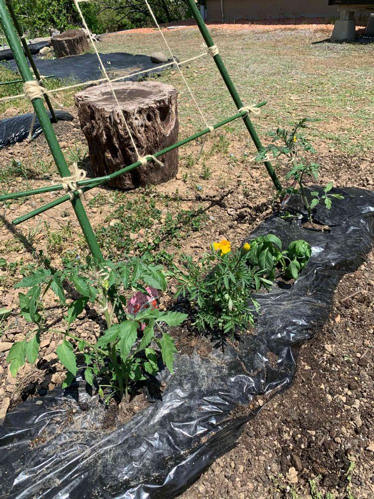 第1花が咲いたのでミニトマト植付けしました。間にマリーゴールド、バジルも🎶