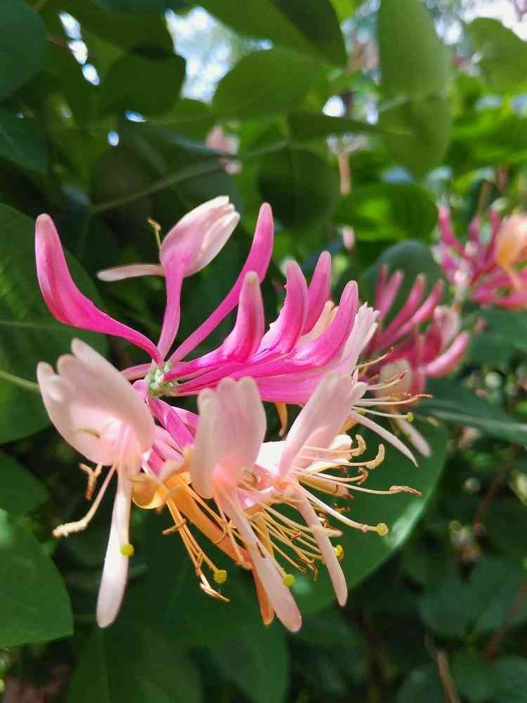 蔓性で、別名ハニーサックルとも言うらしいです よくあちらこちらのお庭で見かけますよね**♪