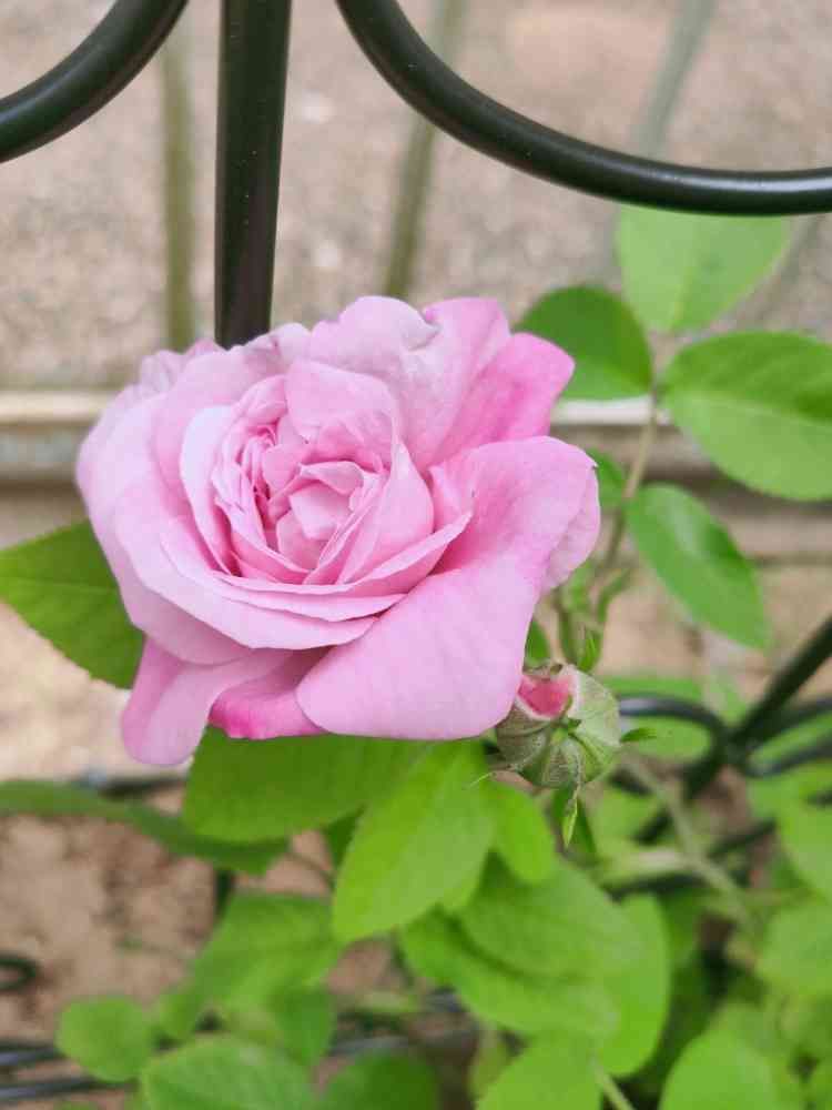 去年の秋に安売りでつい買ってしまった、弦薔薇。まだまだ小さいけど、初めて咲いたお花🌹この子の為にアイアンフェンスも準備しました。成長が楽しみ❣️