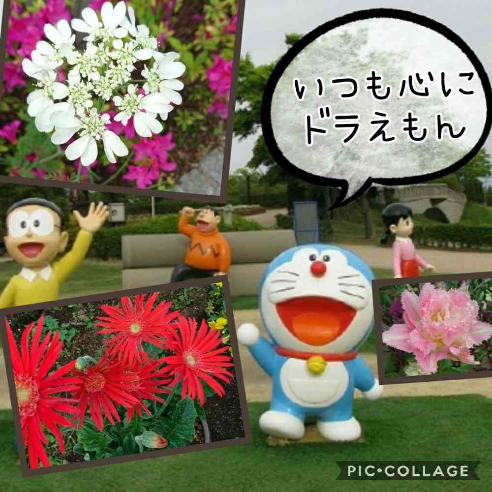 背景素材にあったドラえもんキャラクターがいる公園。スネちゃまはのび太の左にいるみたいなんだけどネ入ってなかった😆ゴメンスネちゃま