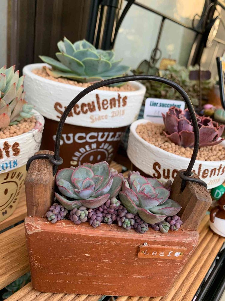 はじめまして♬*゜多肉ちゃんももちろん鉢もカワイイ💖です。お尋ねですが……手前の木材の鉢は底に穴あけしてるんでしょか?
