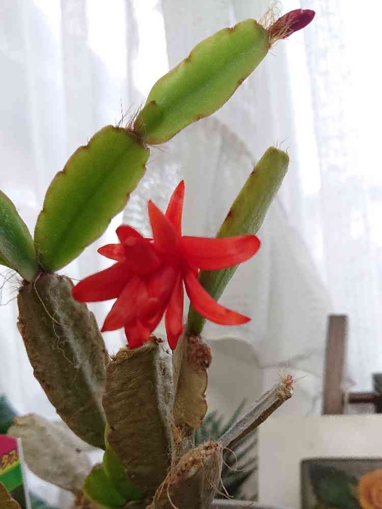 もう駄目かなぁと思っていたイースターカクタス🌼新芽が出たと思ったら花芽でした✨😄