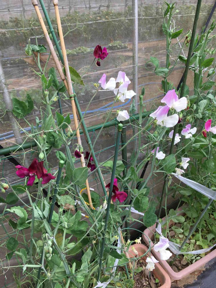 はーい☺️スイトピーは大好きで、あちこちに植えてあります。