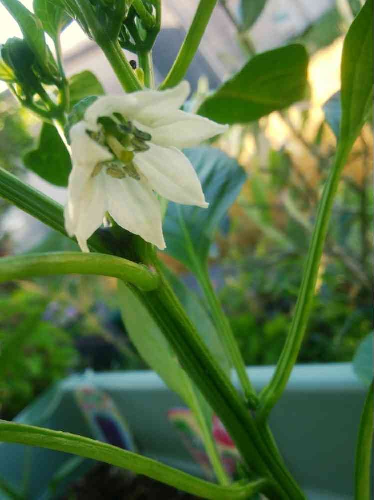 赤いジャンボピーマンの花です