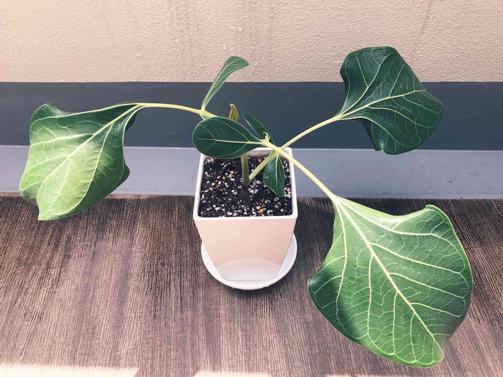 葉っぱがクルッとしててステキなクリシュナ菩提樹さん。大きくなってくれるといいな。