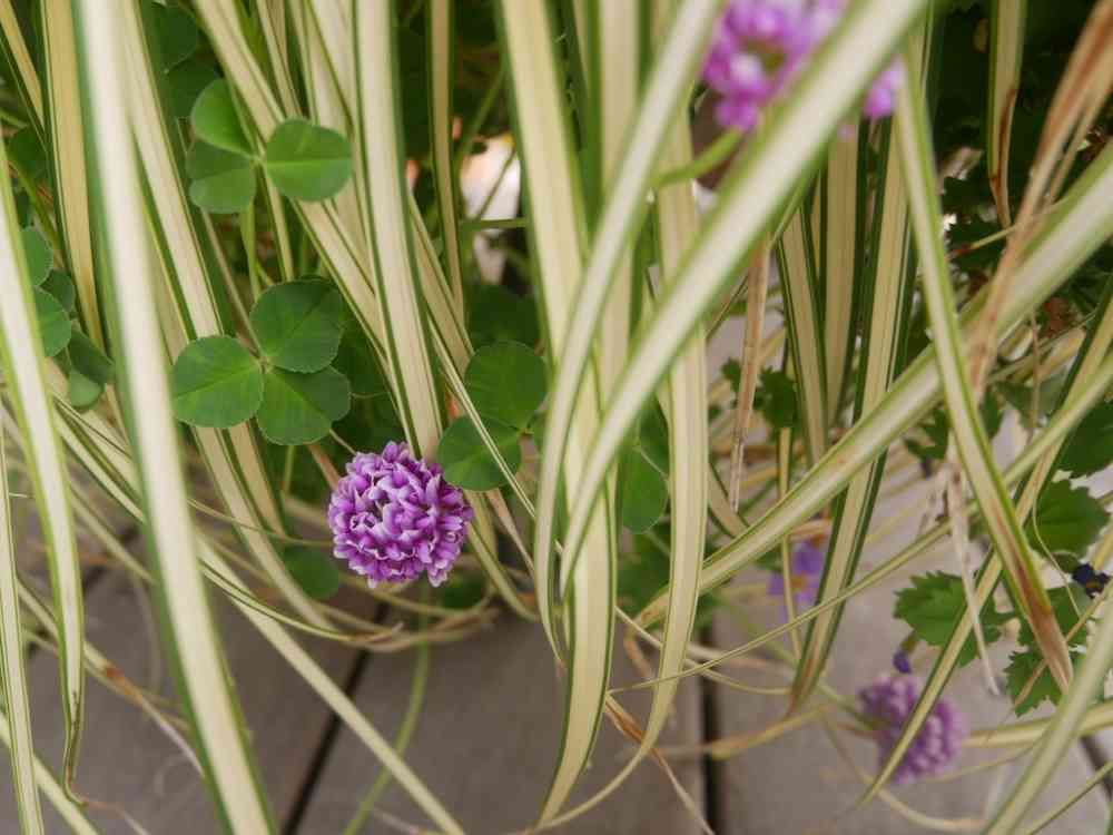 鬱蒼と繁ったベアグラスの間からカトレアクローバーの花がのぞいていました。