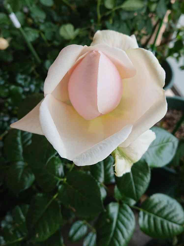 花びらがゆっくり開いてきました。大きく咲きそうな予感🌹
