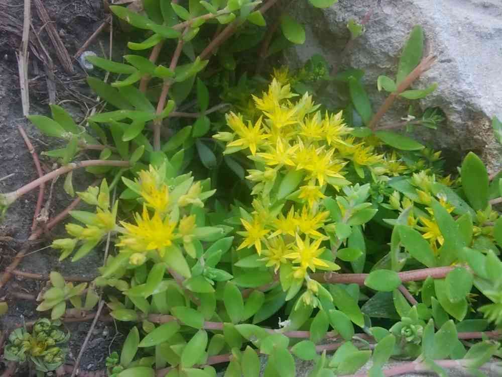 ナナちゃんさん、葉の形と道端に雑草のように咲いているところからコモチマンネングサではないかと思います。ヒントを下さってありがとうございます。
