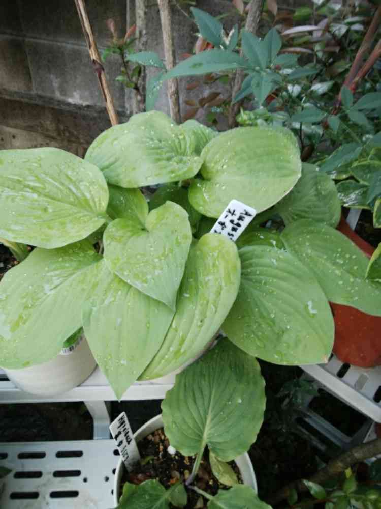ギボウシ オーガストムーン。単色で万人受けでは無いようですが、葉焼けにも強くガーデニングには使い勝手の良いホスタ。これの日陰にヒューケラなどを組み合わすと良いです。あとはセンスで.........。