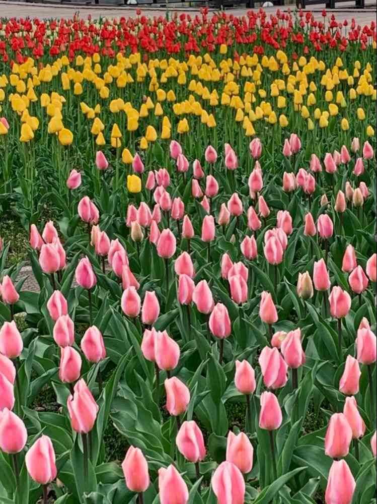一面のチューリップ🌷いいですねえ。私たちの目を楽しませてくれますね。👏👏