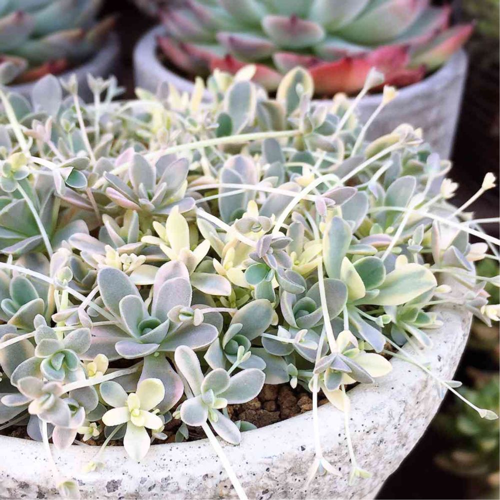 子持ち蓮華の雰囲気に石っぽい鉢が