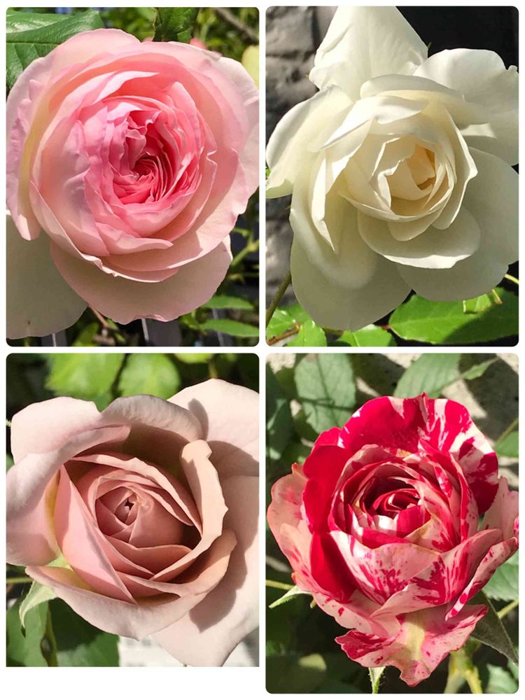 白いつるバラと絞りのバラは、名前不明💦