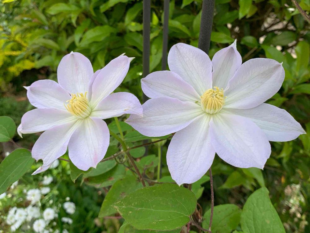 クレマチス 私も白っぽいのを一株持っていますが、地植えからプランターへまた地植えに戻しても元気です。