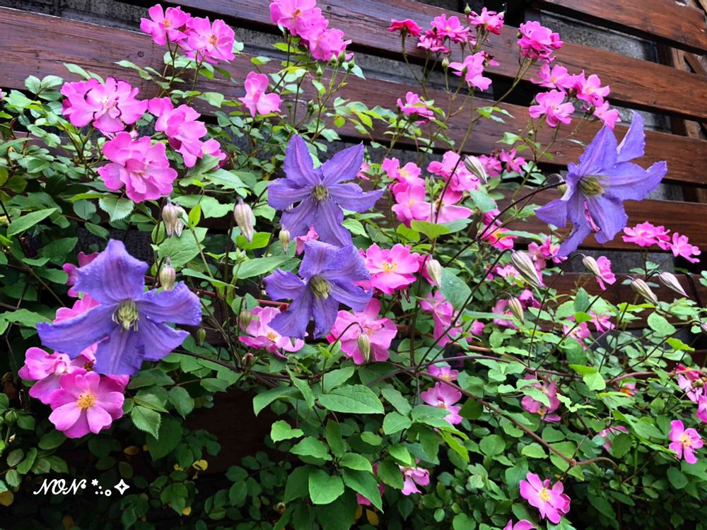 この2つを一緒に誘引して、いつかこのラティス一面に咲けばいいなぁと思います♡