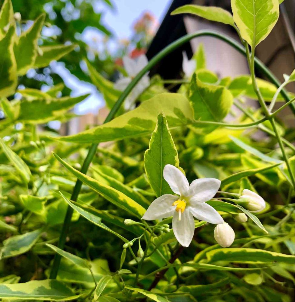 この子は去年あまりにも元気旺盛でお世話(ツルが巻き付くところを行燈にしたてる)が大変になって、ちょっと日陰の場所に移動させてるの。
