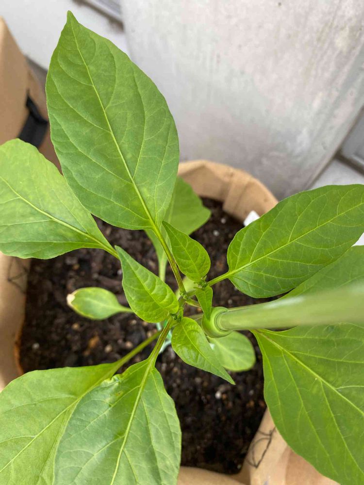 この頃の水を上げるタイミングが難しい、、、唐辛子は水を切らしちゃいけないって言うけど、土表面は結構湿ったまま。