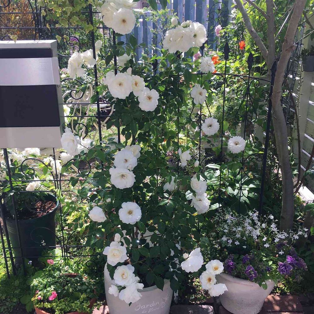 FLアイスバーグ。去年伸びた太くて長〜いシュートから、たくさん花枝がついてくれた✨ちょっとつるばらのようでお気に入り😊