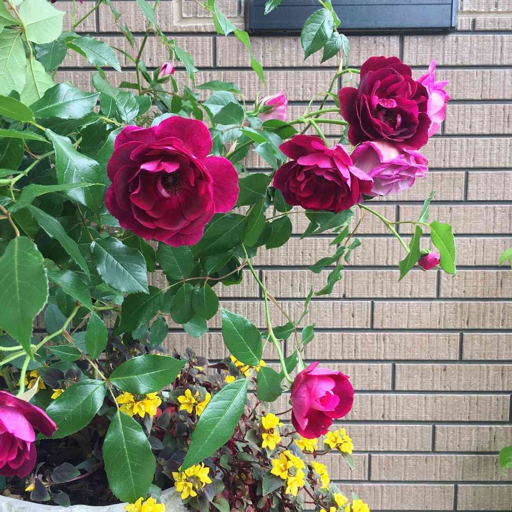 枝があっちこっち伸びて誘引必須。深い赤がとても大人っぽい✨