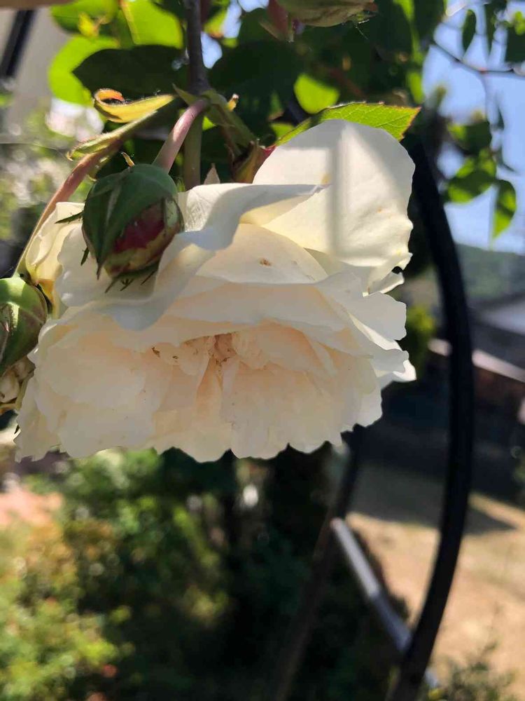 アーチの天辺で上を向いて咲いているのでちょっとお顔をこちらに向けて頂きました🌹