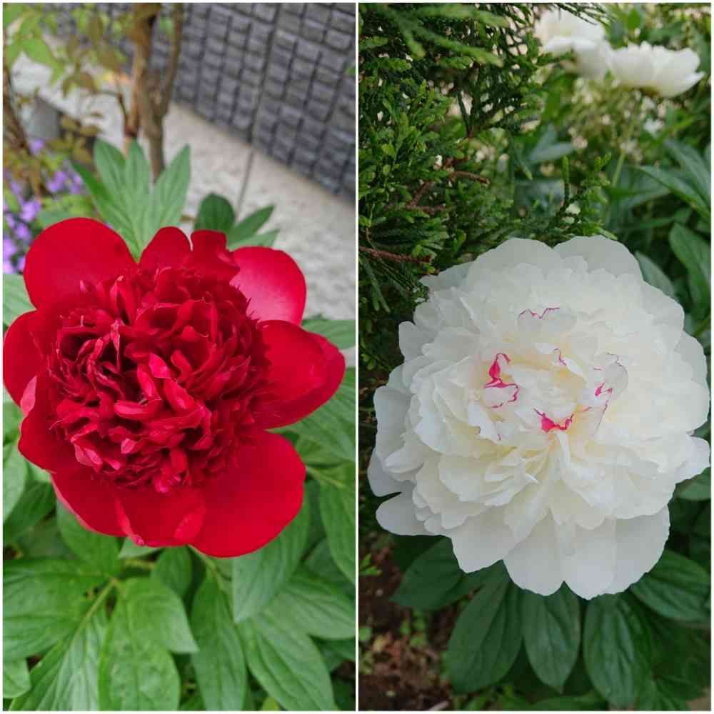 紅白の芍薬をならべました。