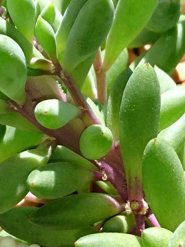 ルビーネックレスの茎が~~~くっついて平たくなって間から新芽が~~~👀🍀