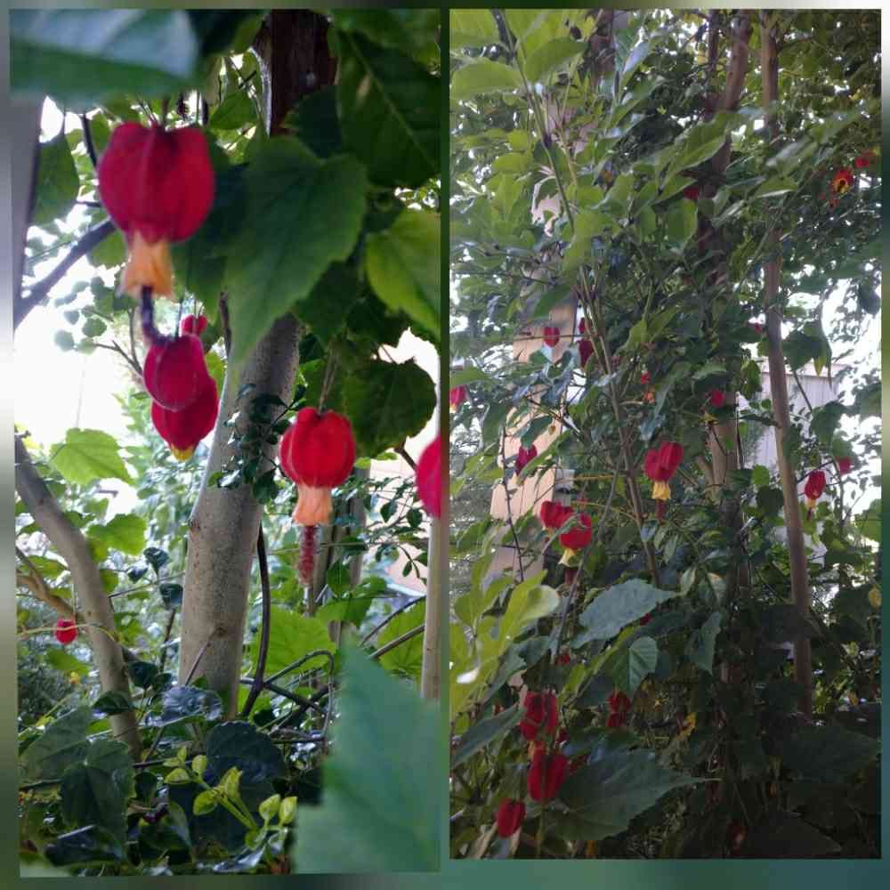 下に巻き付いているのはアブチロン(チロリアンランプ)では❓