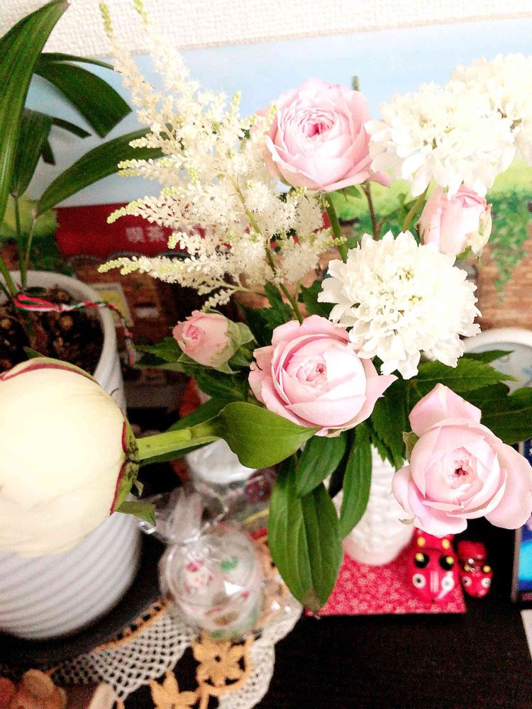 空花(くうか)さんのスカビオサ スノーメディアン,スプレーバラ フェアリーカップ,シャクヤク ラテンドールの投稿画像