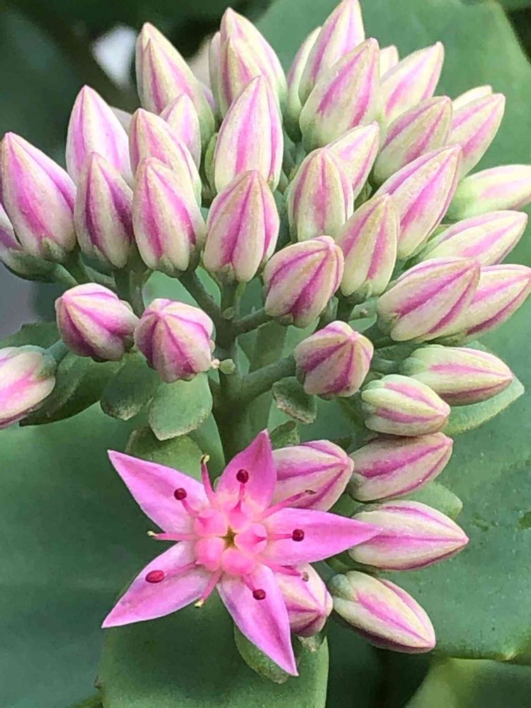 多肉でこんなきれいな花が咲くんですね。つぼみの色合いが可愛い😊