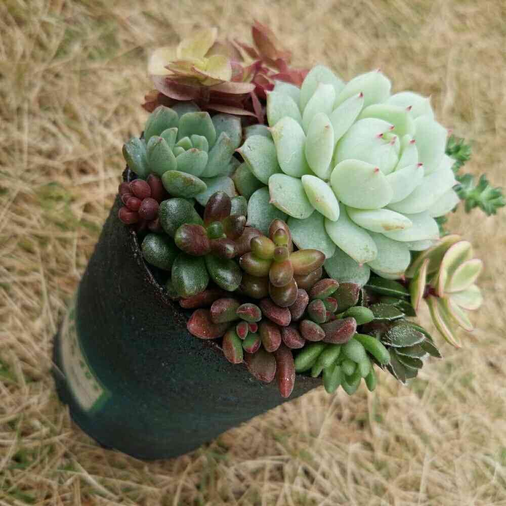 お友達に貰ったリメ缶にシックに寄せ植え❤