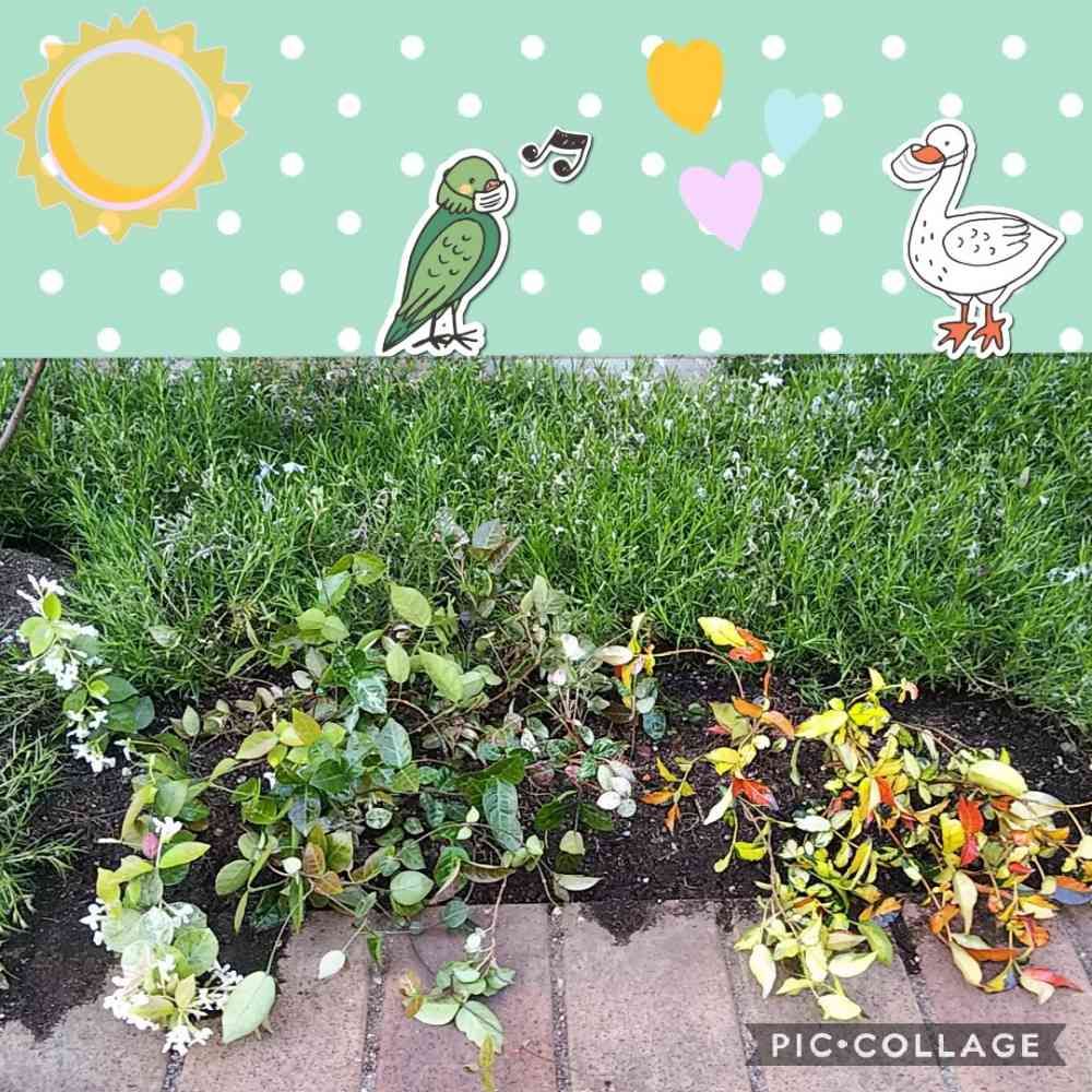 ハツユキカズラと黄金カズラ、鉢植えと日影の地植えの子を花壇の特等席に持ってきました😄