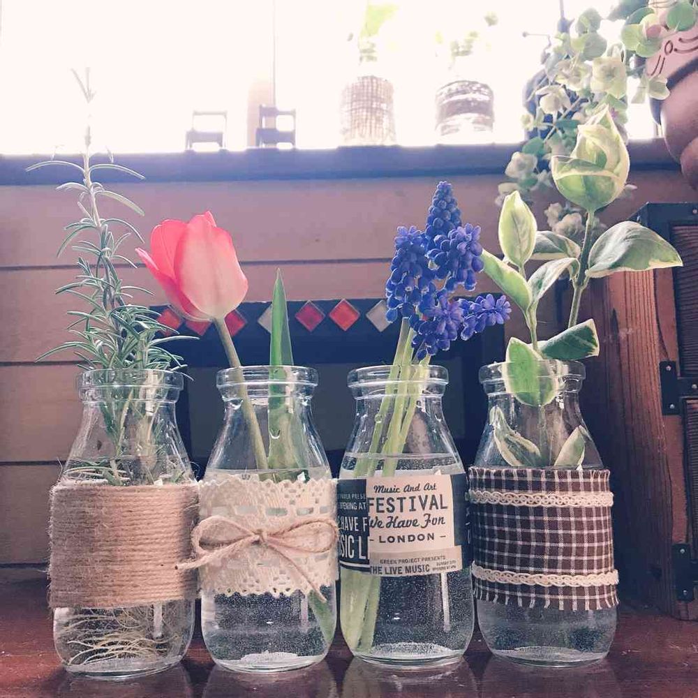 牛乳瓶をリメイクしました。