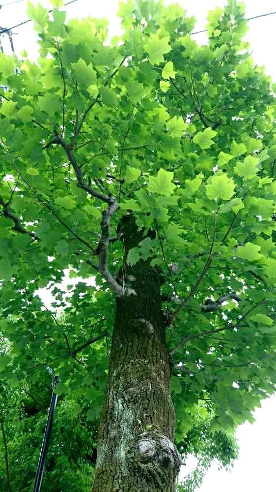 私も名前を知りたいです。プラタナスにも似ていますが、てっぺんが平らですよね。